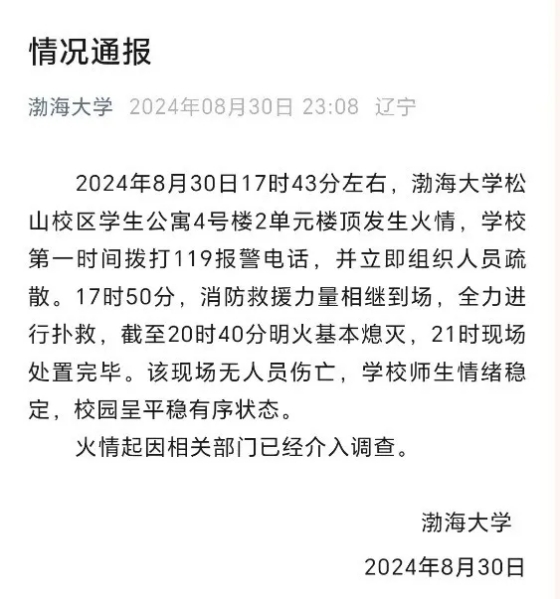 然而,渤海大學(xué)松山校區(qū)在迎新季還未結(jié)束時(shí),就發(fā)生一起火災(zāi)事故,所幸無(wú)人傷亡。