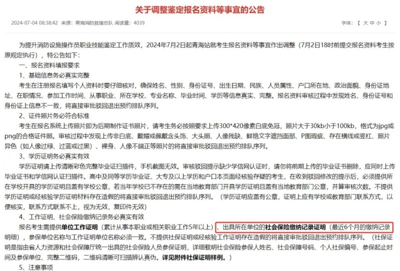 2024年5月,山東、陜西、云南、河南,甘肅5省均要求新增6個(gè)月社保證明。同時(shí),河北站發(fā)布關(guān)于調(diào)整報(bào)名資料審核公告,新增報(bào)名資料真實(shí)性現(xiàn)場(chǎng)抽查環(huán)節(jié)。