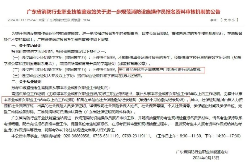 2024年9月13日,廣東站新增6個(gè)月社保證明,并且用戶(hù)口本做學(xué)歷證明的考生需攜帶戶(hù)口本原件進(jìn)行現(xiàn)場(chǎng)復(fù)核。