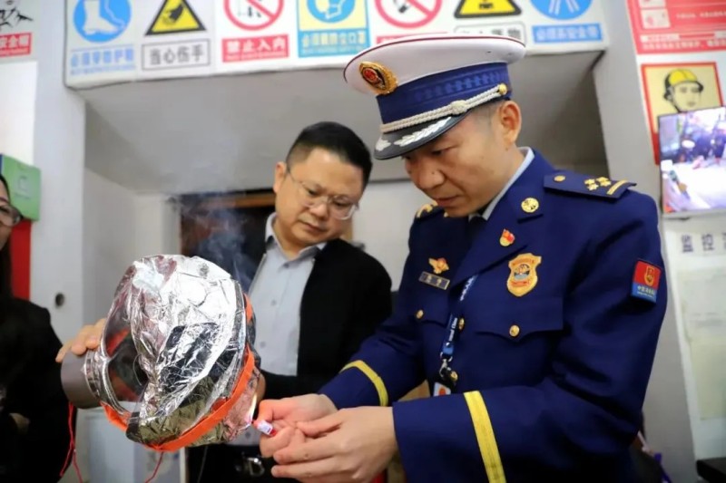 檢查人員秉乘著認(rèn)真仔細(xì),一驗(yàn)到底的工作作風(fēng),當(dāng)場(chǎng)要求打開一個(gè)消防呼吸面罩進(jìn)行點(diǎn)火測(cè)試。