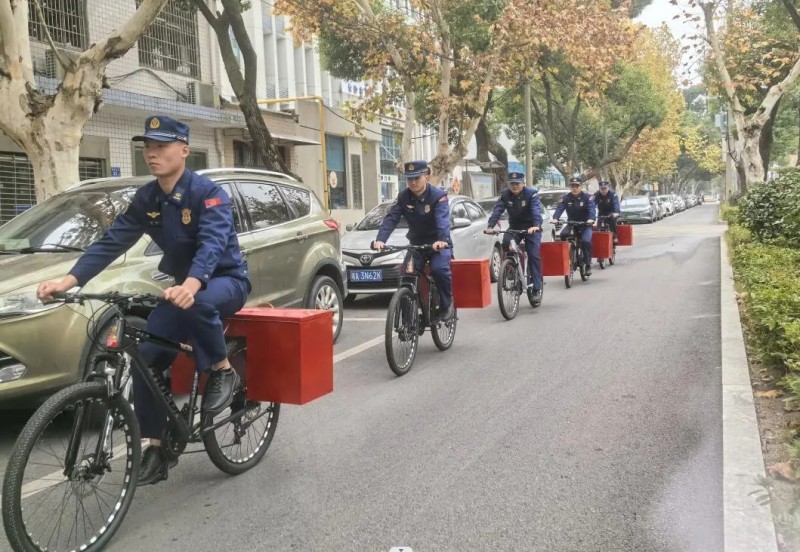 “一提,二拔,三握,四壓!”在長沙市望城區(qū),望城消防救援站成立的騎行小分隊,騎行小分隊由6人組成,配置了器材放置箱,箱內(nèi)配備戰(zhàn)斗服、滅火器、防毒面具及宣傳手冊等,深入轄區(qū)門店開展消防安全隱患排查和消防安全知識宣傳。